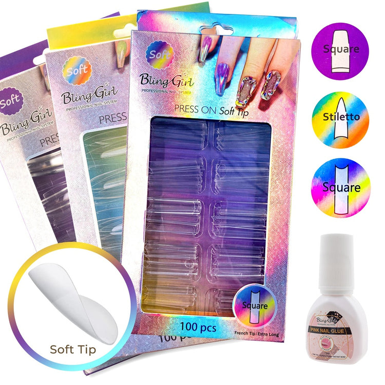 Bling Girl BG-34 Square Toe Nail Full Cover Press On Soft Tips 500 pcs