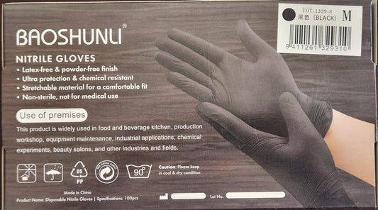 Baoshunli Disposable Nitrile Gloves, Latex-Free, Powder-Free - BLACK (QUALITY PRODUCT)