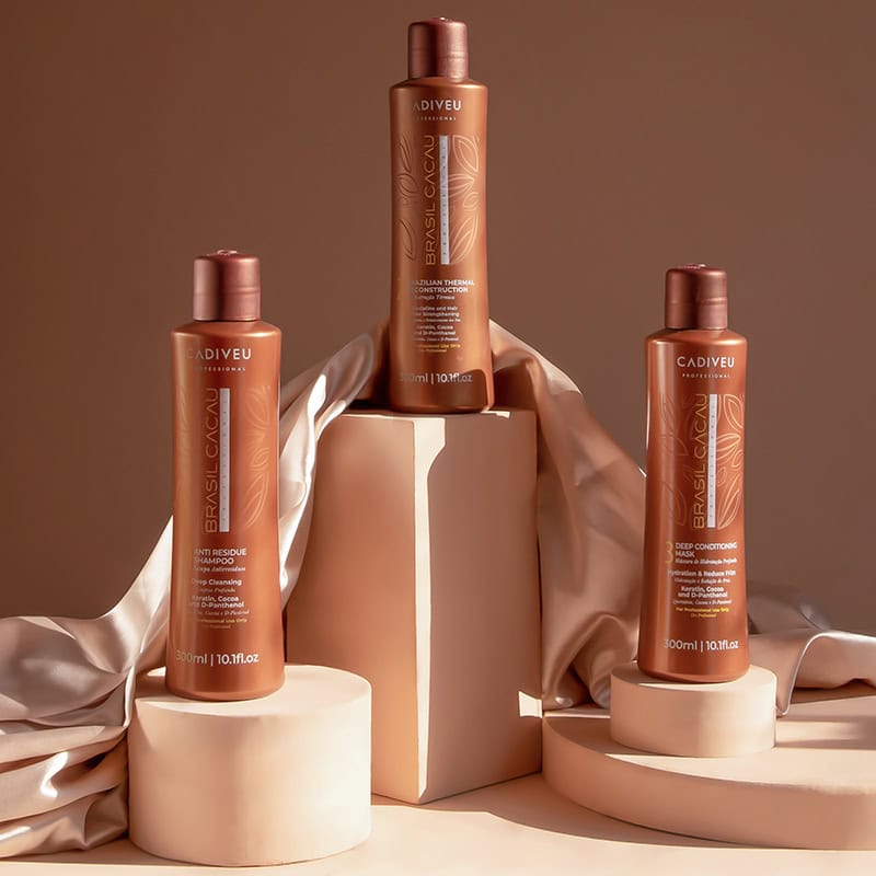 BRASIL CACAU COMBO SET - Brazilian Keratin Hair Treatment Smoothing Blowout Kit Cadiveu Brasil Cacau, 3 products x1000ml