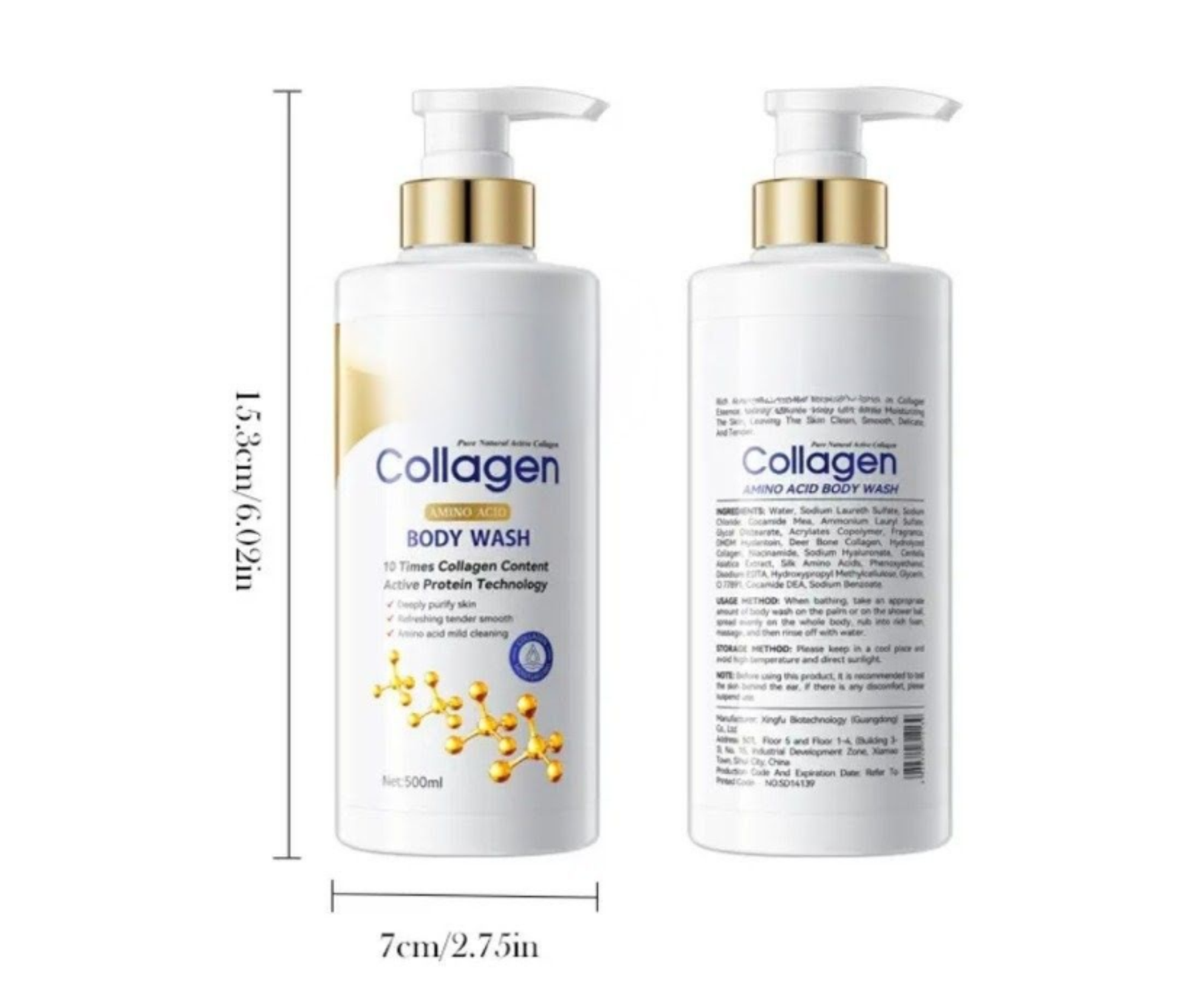 Pump generous amount into hands or loofah. Massage over wet skin from neck to toes, focusing on dry areas. Rinse thoroughly. Use daily morning and evening. Follow with SADOER Collagen Body Lotion for maximum firming benefits.
